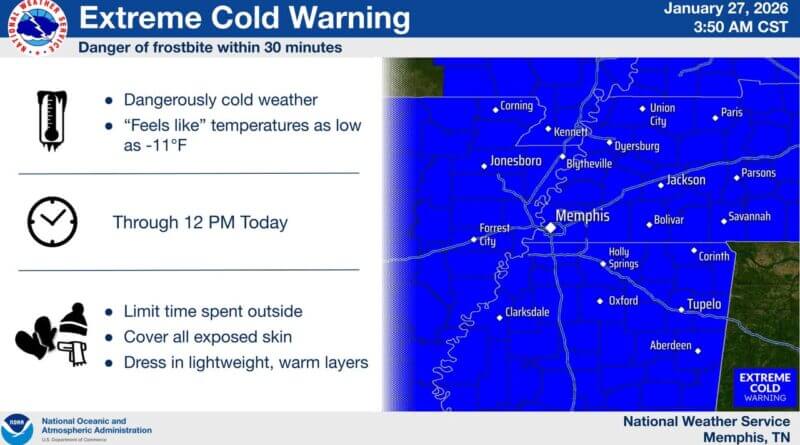 The National Weather Service in Memphis has issued a forecast warning of ongoing cold weather, with another Arctic blast expected to hit the region next weekend.