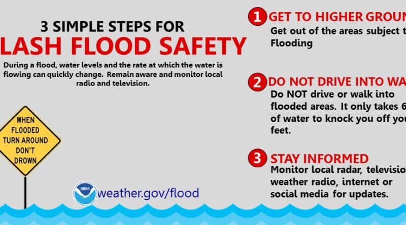 Officials highlight three key steps for flash flood safety: move to higher ground, avoid driving into standing water, and stay informed about weather conditions. These tips are designed to help residents respond effectively to ongoing flood threats.