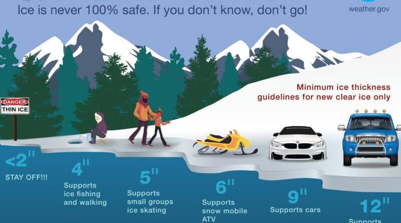 The authorities advise against sledding, walking, playing, or driving near bodies of water until conditions are confirmed safe. Thin ice can pose a serious risk of falling through and drowning.