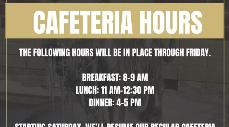 Cafeteria hours adjusted through Friday, returning to normal Saturday