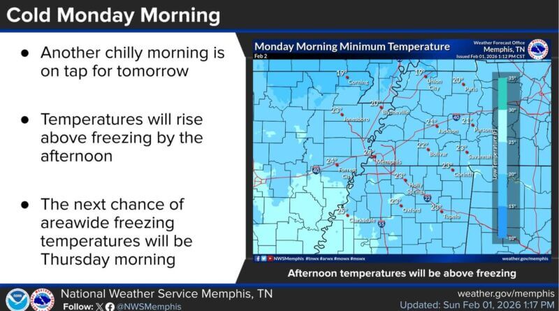 The next risk of widespread freezing temperatures is forecast for Thursday morning, the National Weather Service said. Residents are advised to prepare for the cold conditions.