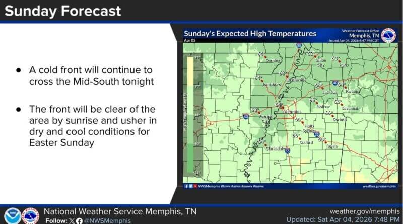 Cold Front Clears Mid-South, Brings Dry, Cool Easter Weather