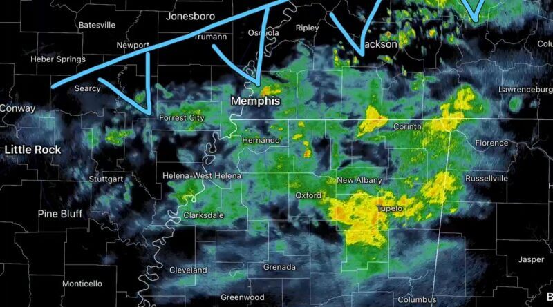Cold front near Jackson, Tennessee, brings diminishing rain chances
