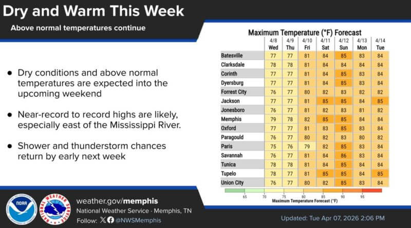 Dry conditions and above-average temperatures are expected to persist through the upcoming weekend, according to meteorologists.