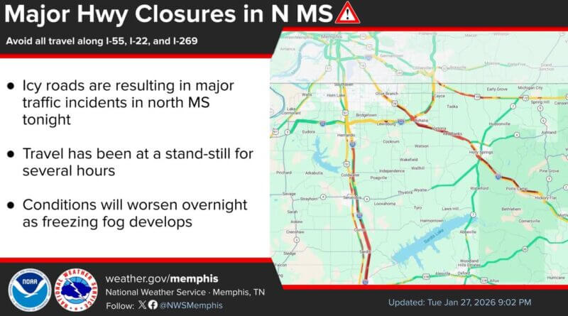 Icy Conditions Lead to Multiple Road Closures in Northern Mississippi