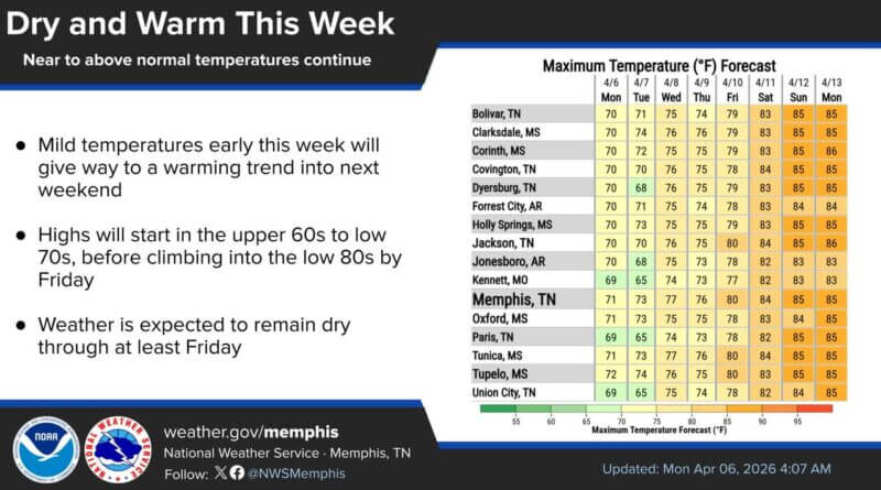 Mild weather is expected to begin across the region this week, according to meteorologists. The pattern will bring comfortable temperatures and little rain as the week progresses.