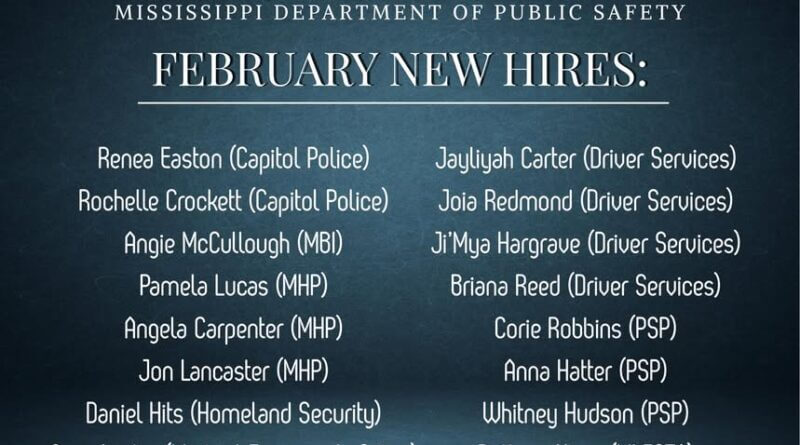 The Mississippi Department of Public Safety announced the addition of several new team members this week. Department officials expressed enthusiasm about the new hires and the work ahead.