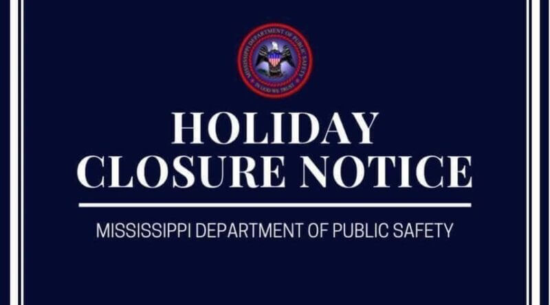 The Mississippi Department of Public Safety will close its offices on Monday in observance of Martin Luther King Jr. Day, according to a news release from the agency.