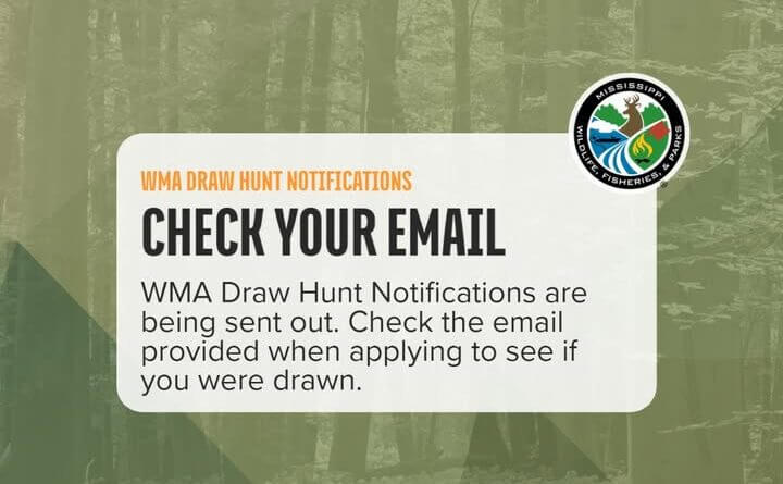 Mississippi wildlife officials have sent out notifications for the 2026 spring turkey hunting season at Wildlife Management Areas (WMAs). Hunters who applied for the draw should check their email or access their profile in the state’s license system to see if they were successful.