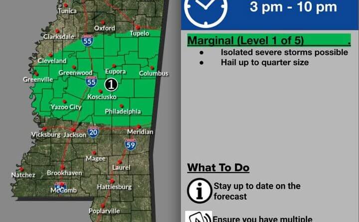 National Weather Service issues marginal risk for severe weather in parts of Mississippi