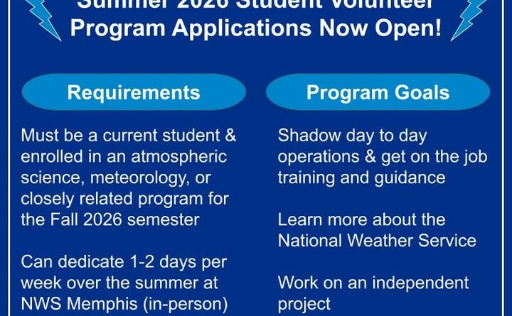 Students interested in participating can find more information and apply through the agency’s website at https://weather.gov/meg/volunteer, according to NWS officials.