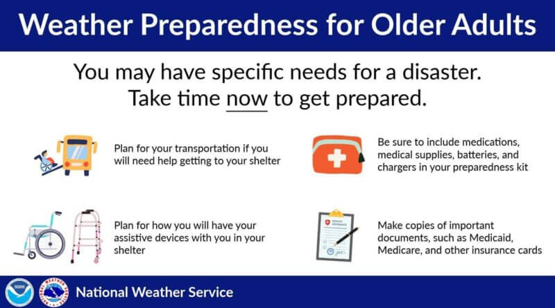 Older adults are particularly vulnerable during severe weather events, according to safety officials. They recommend that seniors and their families identify specific needs ahead of storms or extreme conditions.