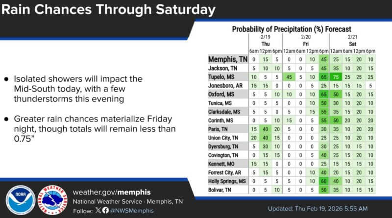 Higher rain chances are forecasted to arrive Friday night, bringing increased precipitation across the region.