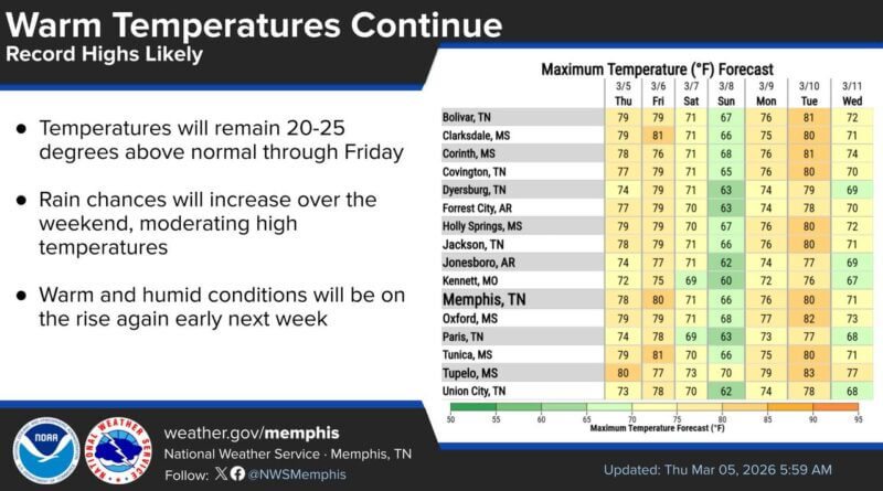 Record Highs Expected Before Cold Front and Showers Hit Memphis Area