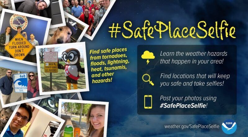 The campaign aims to inspire others to prepare and recognize safe locations during extreme weather events. More information is available at https://www.noaa.gov/safeplaceselfie.
