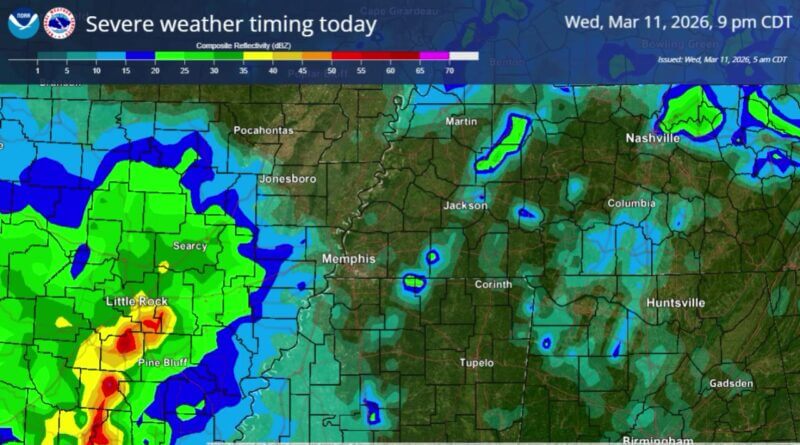 A slow-moving weather system is expected to cause another round of severe storms today, according to forecasts. The system could bring damaging winds, large hail, tornadoes, and heavy rain.