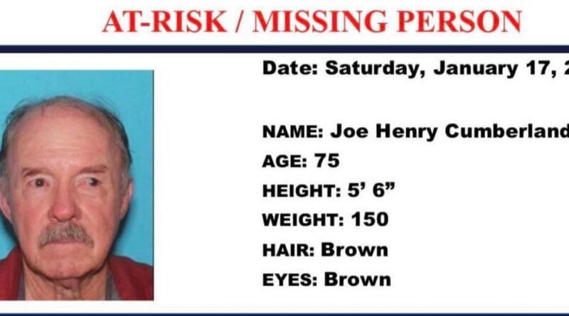 The Mississippi Bureau of Investigation announced Saturday that Joe Henry Cumberland of Lucedale has been reported missing and was last seen late Friday morning.