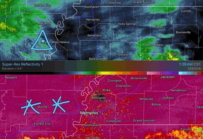 Sleet has begun mixing in areas south of a line from Marianna, Arkansas, to Tunica. The combination is expected to worsen travel conditions.