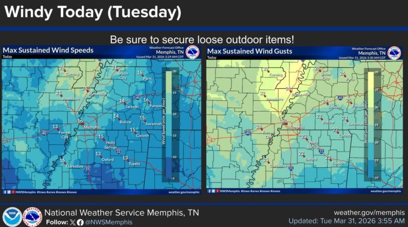 The National Weather Service in Memphis, Tennessee, has issued a forecast for a warm and windy spring day across the Mid-South region.