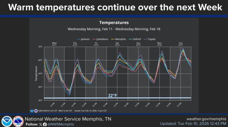 Warm temperatures are expected to persist across the Midsouth region in the coming days, according to meteorologists.