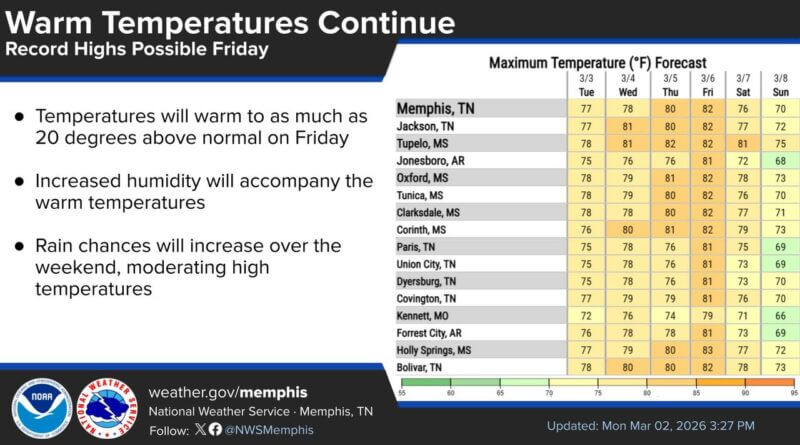 Temperatures are expected to remain above average throughout the week, according to weather reports. The warm weather is expected to continue across the region, providing mild conditions for residents.